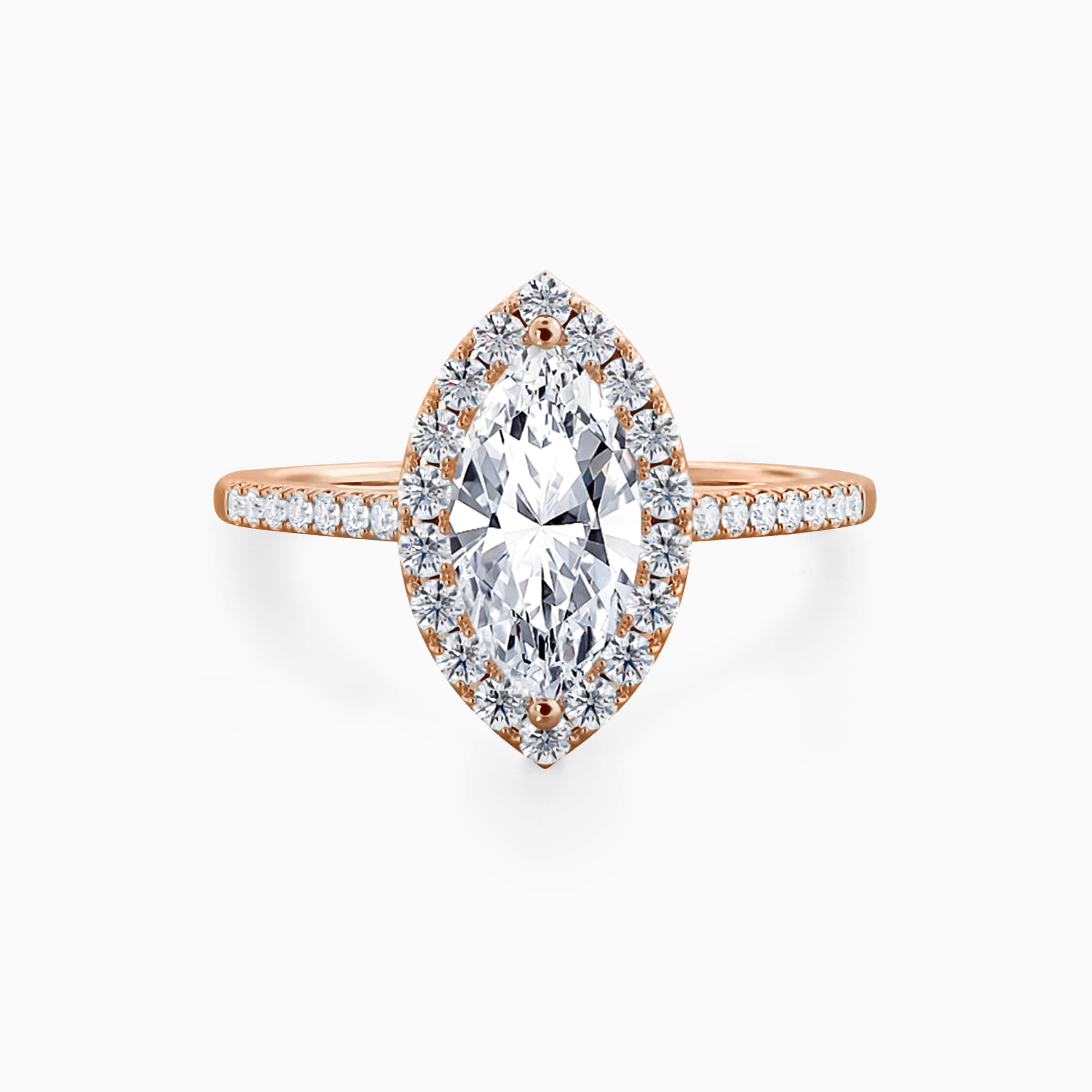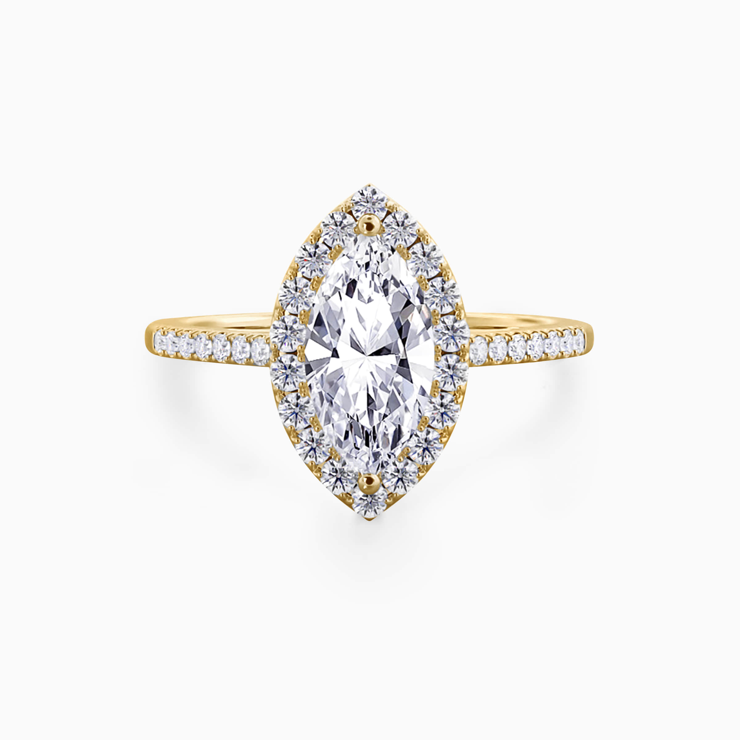 This breathtaking marquise halo engagement ring is the epitome of elegance and sophistication. The center stone, a stunning marquise-cut lab-grown diamond, is surrounded by a halo of smaller lab-grown diamonds, adding extra sparkle and shine. To further enhance the ring's beauty, the band is set with pavé lab-grown diamonds, creating a glittering trail of light that leads to the stunning center stone. It's a halo marquise lab-grown diamond engagement ring that will be cherished for a lifetime and is sure to take your breath away every time you look at it.
