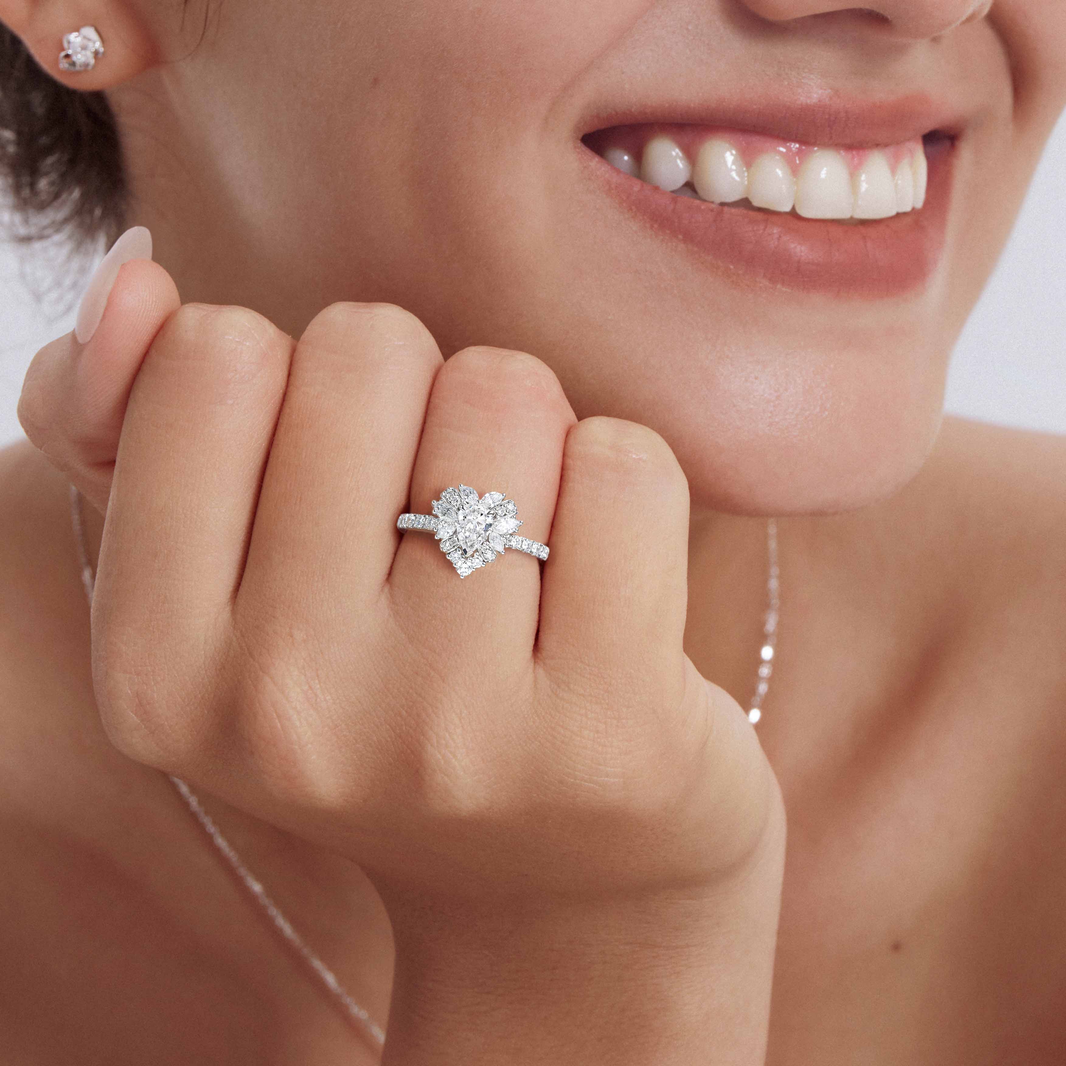 Lab-Grown Pear-cut Halo Pavé Engagement Ring