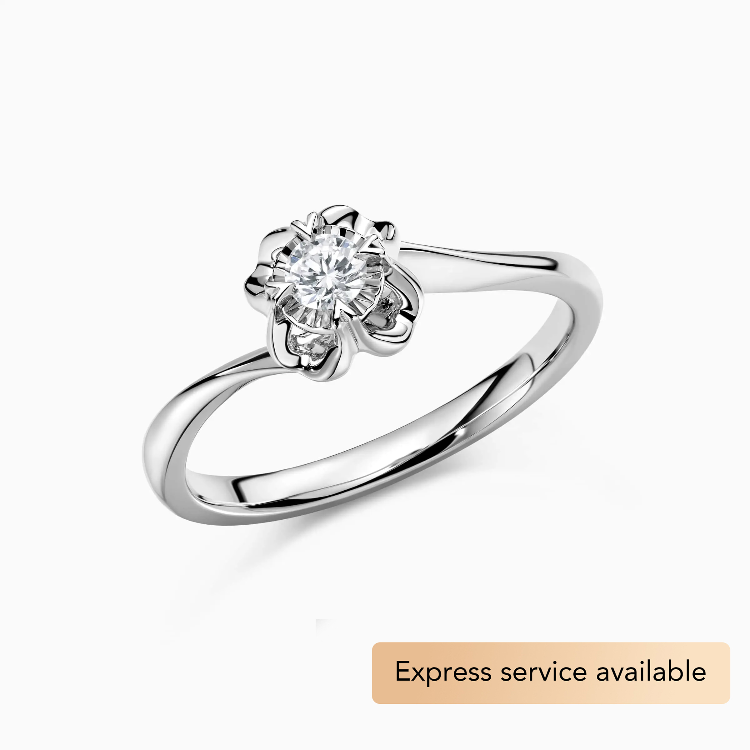 Round Solitaire Affordable Floral Bypass Engagement Ring