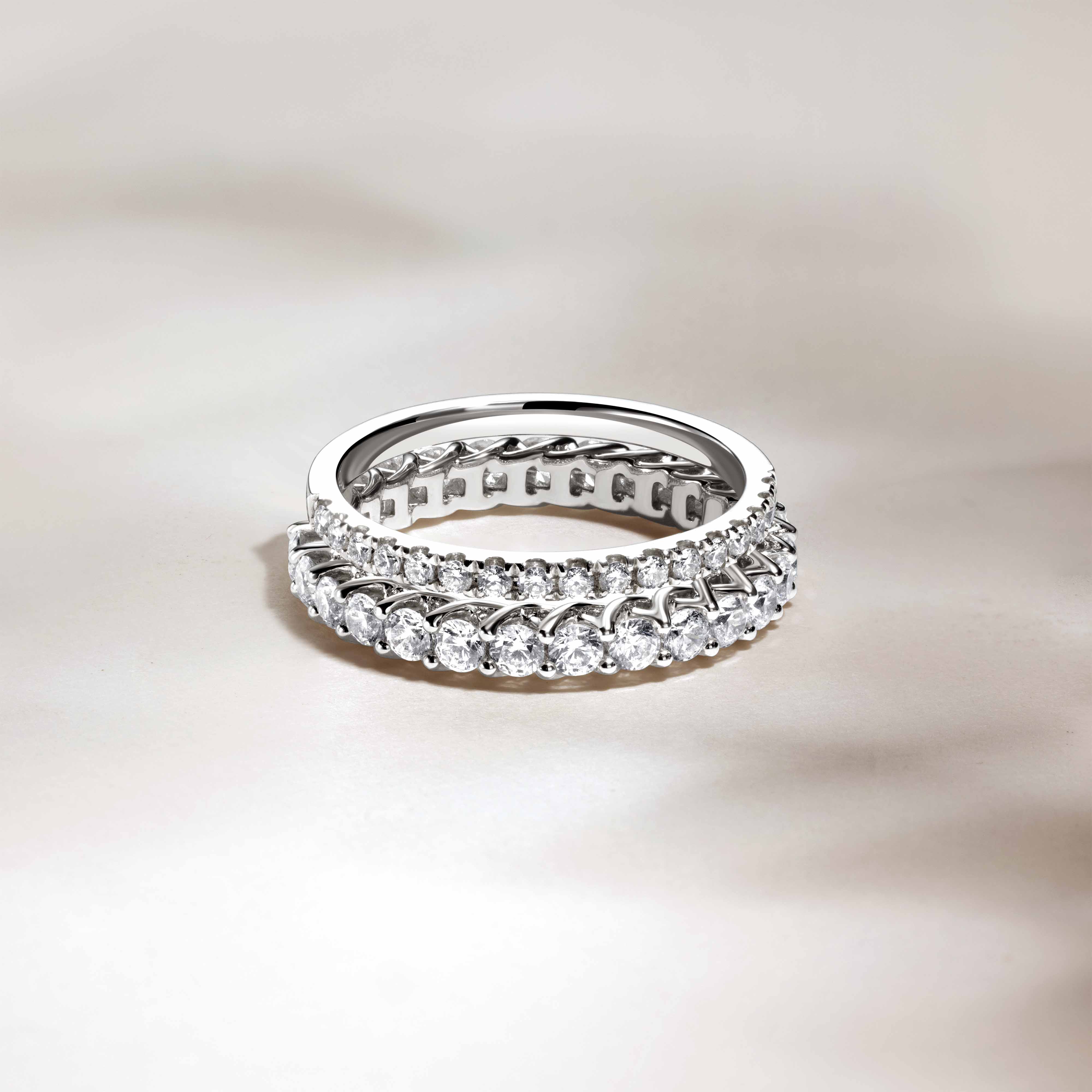 Chevron Diamond Pavé Milgrain Wedding Rings